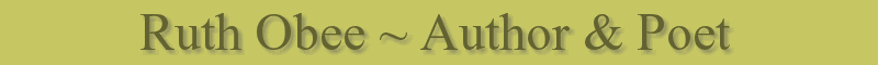 | Ruth Obee's poems and feature stories have appeared in, among others, the Journal of Commonwealth Literature, Denver Quarterly (published by the University of Denver), the Colorado Springs Independent, the Christian Science Monitor, Cricket and Cicada magazines for children, Almagre (the Pikes Peak Community College literary journal), Kiva magazine of the Cheyenne Mountain Heritage Center, Peak and Prarie (published by the Rocky Mountain Chapter of the Sierra Club), The Silver Lode (the Colorado State Poetry Society's anthology), Active for Justice (published by the Pikes Peak Justice and Peace Commission), Wagon Tracks (published by the Santa Fe Trail Association) and Pulse of the River: Colorado Writers Speak for the Endangered Cache la Poudre (published in 2007 by Johnson Books/Big Earth publishing: Boulder, Colorado). Obee was a presenter at Authors Fest of the Rockies in 2009. | |||||||||||||||||||||||||||||